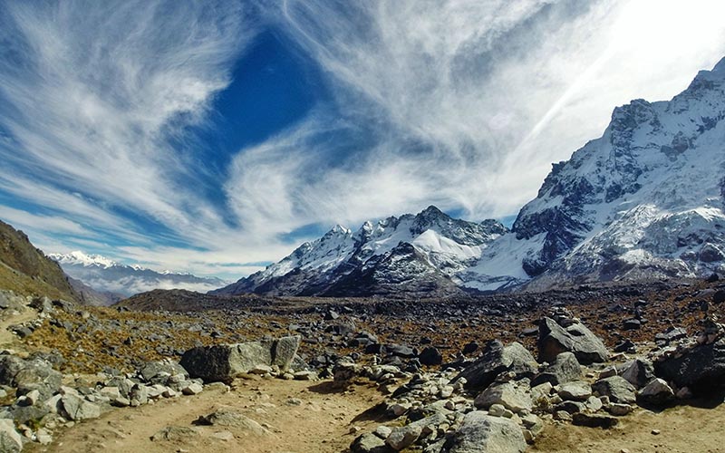 The trek passes by the majestic Salkantay Mountain (6,271 m), one of the most sacred peaks in Inca culture, offering breathtaking views and a true connection with nature.